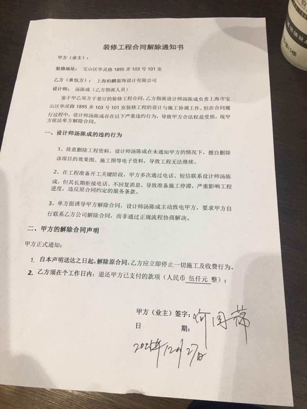 2025年12月27日去柏麟裝飾設計有限公司退款,現(xiàn)場陳老板答應給我元旦之前退款,直到今天還沒收到5000元,一直在拖。說今年肯定解決的退款問題。
