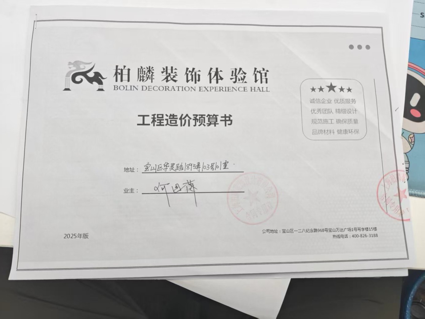2025年11月25日家博會安排4家裝修公司測量,選了4家中柏麟裝飾設計有限公司;