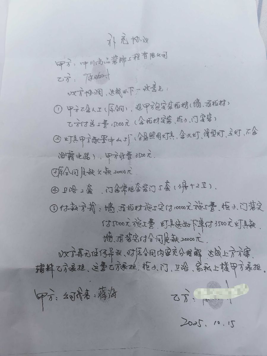 套路(五):他們?nèi)サ臅r(shí)候吹的天花亂墜,說自己這么大的工廠,這也送,那也送,其實(shí)都是騙人的,到最后只按“材料訂購(gòu)”合同走,根本不是裝修合同,他們就是一個(gè)空殼公司,什么都做不了,就給你超高價(jià)賣一個(gè)破板子,什么金剛板,其實(shí)就是木飾面,哪里都可以買到
