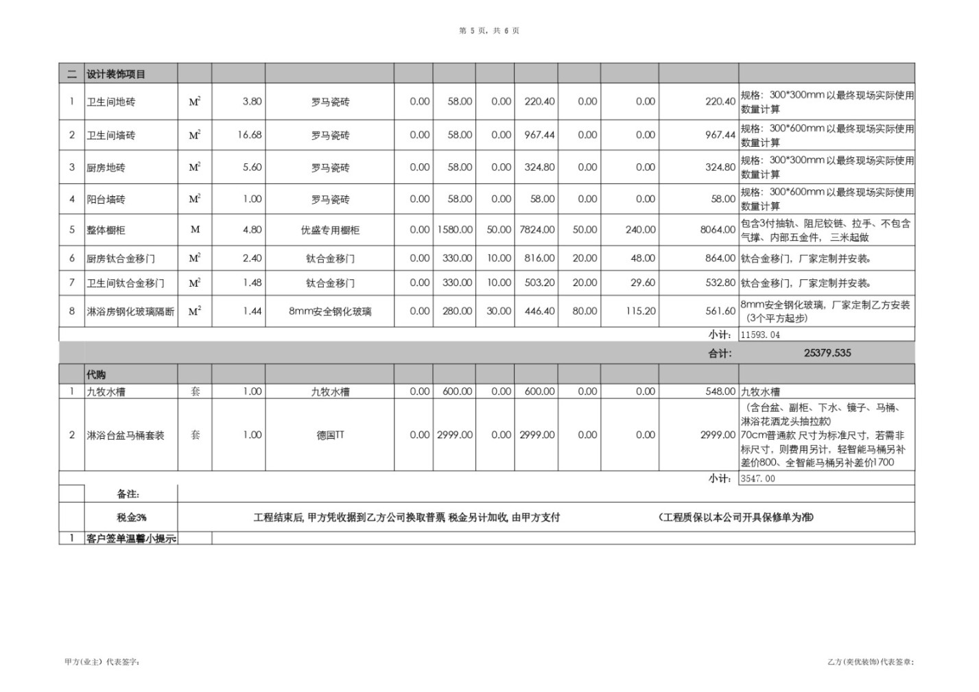 (3)、“防水處理”: 從基礎(chǔ)預(yù)算的10㎡增至15.5㎡,增額302.00元。《上海市住宅裝飾裝修計價規(guī)范》第5.4.3條規(guī)定:"防水工程量應(yīng)按實際防水面積計算,淋浴區(qū)墻面高度不超過1.8米",該公司在相同衛(wèi)生間條件下將面積增加55%,無合理依據(jù)。