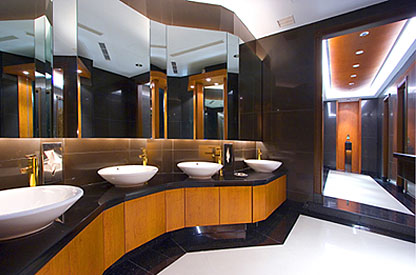 2、為上級的柜廚或壁柜可儲存衛(wèi)生用品,如果在柜廚或凹槽的門面上安裝上鏡面,不僅使衛(wèi)浴空間更寬敞、明亮,而且豪華美觀,費用也不貴,還可做梳妝臺使用。