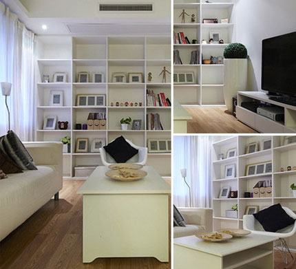 客廳的茶幾及書柜,大量的收納功能,直到頂面的制作方式,不僅可以增加收納功能,更是一種簡(jiǎn)單時(shí)尚的裝飾手法,正如簡(jiǎn)約風(fēng)格一樣,簡(jiǎn)約不簡(jiǎn)單。