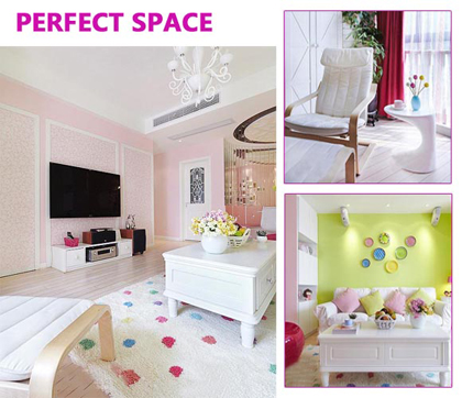客廳里的色彩用得非常豐富。粉綠色的客廳背景墻,粉紅色的靠墊,粉綠色的靠墊。沙發(fā)、茶幾、地毯清新的白色為主。雖然空間里也出了大紅色,常規(guī)上說(shuō)紅與綠是色彩搭配禁忌。在這個(gè)空間里卻成為色彩點(diǎn)綴亮點(diǎn)。
