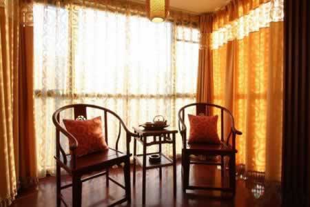木制的休閑椅、垂直瀉落的窗幔及布藝靠墊,適宜柔化了整個空間。寬闊明亮的休閑處,暖色調(diào)的燈光配合淺色的窗簾,給人一種溫馨舒適的感覺。