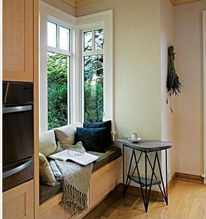獨(dú)家點評:用柔軟的墊背營造出舒適、溫暖的感覺,旁邊加上的三角形小桌子,立馬在小小的空間內(nèi)獨(dú)立出一個休閑區(qū),可謂匠心獨(dú)運(yùn)。