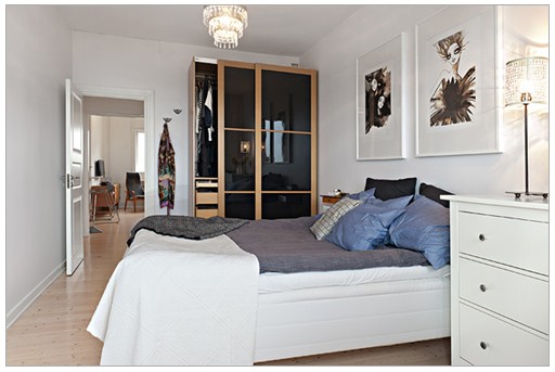 對于任何風格的居室來說,白色和黑色無疑是永恒的主題色。而將其單色地運用在臥室的設(shè)計中,其溫暖和舒緩感纖毫必現(xiàn)。墻面裝飾畫和獨特設(shè)計的衣柜,便體現(xiàn)了臥室的后現(xiàn)代風格。