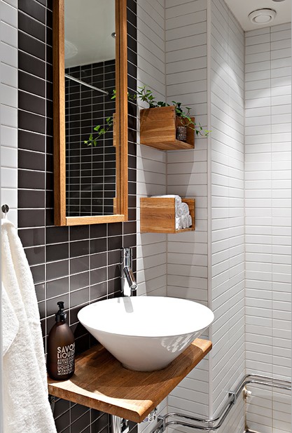 整個衛(wèi)生間的墻身以黑色、白色格子瓷片為主,現(xiàn)代感十足。精心設(shè)計好瓷片的顏色和組合,為座便器、花灑、臺盆等均設(shè)計了不同的背景,使衛(wèi)生間看起來也風景無限。