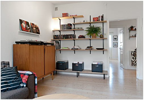 客廳另一邊訂做的裝飾架。 可以擺放裝飾品或書籍,利用書柜散發(fā)的知性氣質(zhì),將這個區(qū)域布置為客廳的文化區(qū)。讓溫馨的書香暖暖融入客廳。