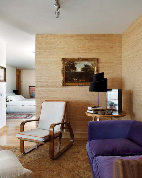 這個客廳粗眼看來,背后的那一面文件柜似的背景墻很是醒目,實用且韻有文化色彩。細(xì)細(xì)看來,其實每一處都是風(fēng)景。墻上的抽象畫,中式風(fēng)味的小臺燈、搖搖椅……