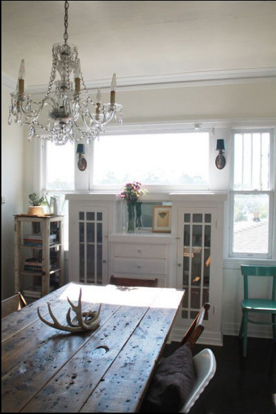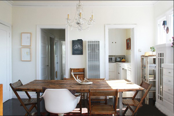 舊舊的餐桌是業(yè)主MM自己淘回來(lái)的,是個(gè)二手貨哦。在這個(gè)白色的空間里卻成為一大亮點(diǎn)在