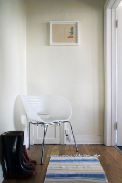 這里是進(jìn)門(mén)換鞋子的地方,擺放的椅子可以很方便的換鞋或穿鞋,留出的空間正合適這樣一個(gè)活動(dòng)的椅子,如果定制的換鞋椅,空間就顯得擁擠了。