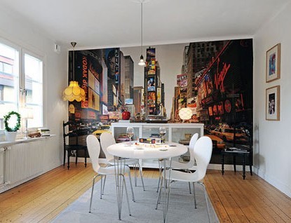 餐廳的另一面墻摩登城市街景的壁畫,第一時間將我們的視線牢牢吸引,且讓人印象深刻。角落里明黃色復(fù)古燈具,充滿著濃濃的懷舊氣息。醇厚的中性色搭配令就餐空間顯得氣質(zhì)沉穩(wěn)而溫馨感十足。