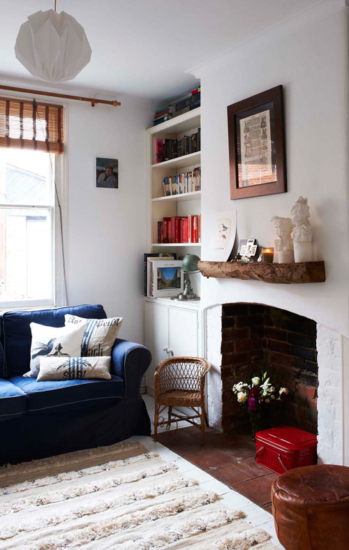 客廳里原先是有設計壁爐的,可是對于我來說并不實用。就將它去除了??梢宰龀珊唵蔚氖占{用。小戶型空間每一個空間都要做到實用才可以。