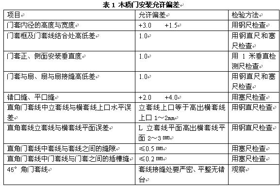 ——門套線的安裝允許值應(yīng)符合表1的要求。
