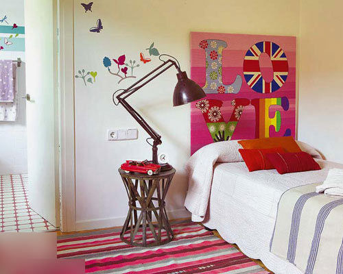 床頭明艷的拼接面料個性十足,純白色的棉質床品柔和了豐富的色彩。圓點、花案、抽象圖案,以及艷麗的色彩在大面積留白中,平衡了繁復與簡約兩種氣質。