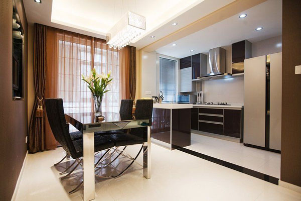餐廳與廚房相對,廚房間采用的半開放式的。房東說他們都不是很喜歡油煙,家里做飯也少,這樣就足夠了、