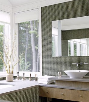 原木材質(zhì)的浴室柜將自然風(fēng)格蔓延到整個(gè)衛(wèi)浴間的設(shè)計(jì)上,搭配綠色的馬賽克貼面和白色的臺(tái)上盆等潔具,給這個(gè)衛(wèi)浴間一個(gè)天然的表情,讓你忘記壓力。