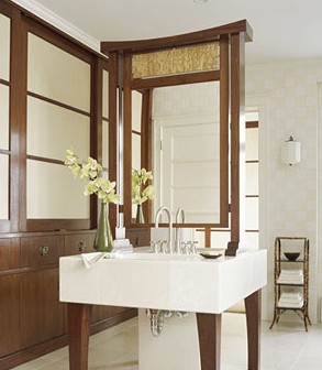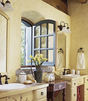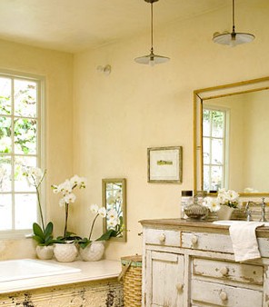 掉漆的浴室柜呈現(xiàn)出原始狀態(tài)的造型,卻正是它使鄉(xiāng)村風(fēng)格的衛(wèi)浴間拋開(kāi)一切現(xiàn)代工業(yè)所帶來(lái)的束縛感,搭配藤質(zhì)的天然材料,帶給浴室一種溫馨舒適的感覺(jué)。