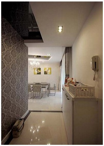 一個(gè)現(xiàn)代感極強(qiáng)的家居門廳,可以采用一些能表達(dá)時(shí)尚、前衛(wèi)的壁紙?jiān)氐取0咨拇纱u與棕色的印花壁紙,會(huì)給空間帶來無限前衛(wèi)而又寫意的趣味。同時(shí),一個(gè)線面流暢的現(xiàn)代感十足的鞋柜,既滿足了門廳的功能需要,又與門廳的風(fēng)格極為協(xié)調(diào)匹配。