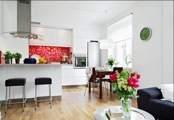 概要: 北歐式的風(fēng)格里給我們印象多數(shù)都停留在那個陽光滿滿,通眼白色墻面的畫面里。生活如同交響樂有不同節(jié)奏的,或激動高昂,或平靜舒緩,在家居裝修色彩應(yīng)用中,也不應(yīng)該太平板單調(diào),這樣很容易出現(xiàn)疲勞感,用一些鮮亮的顏色點綴在白色中,不需太大面積,這樣就能保持生活的整潔?! ∵@個不大的中戶型空間里,廚房及餐桌做在了一個空間里。