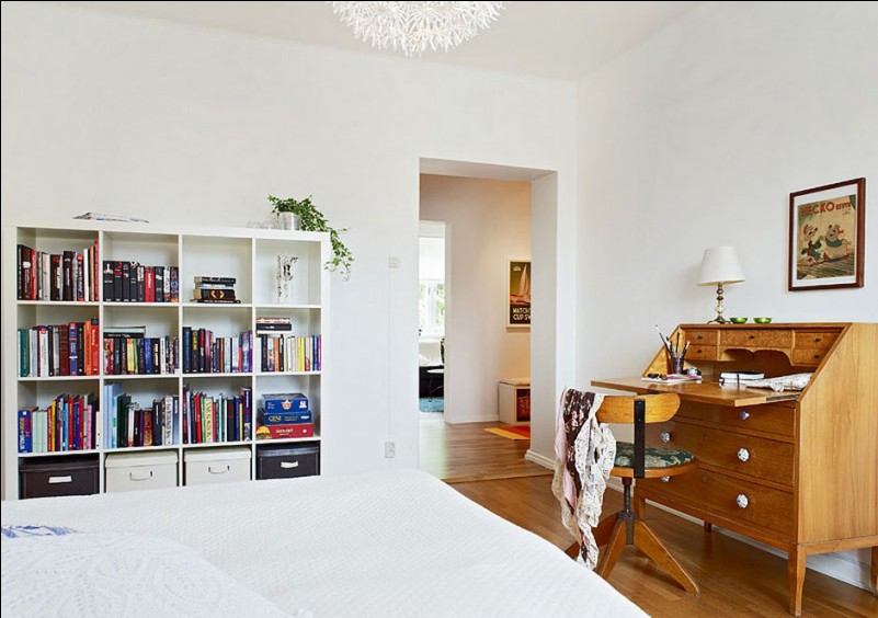 如果說餐廳客廳廚房都是現(xiàn)代感十足的現(xiàn)代歐式風(fēng)格,那么從臥室的各個細(xì)節(jié)又能看出不同。床另一頭的寫字臺旁搭配的椅子,帶有典型的20世紀(jì)50年代風(fēng)格。一點點典雅的風(fēng)格顯現(xiàn)。