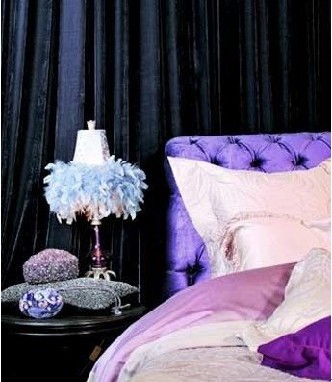 九,床品的搭配。紫色總是最符合女人心底深處的浪漫狂想,但在使用紫色布置床頭時(shí)最好有所克制,因?yàn)樯释哂邪凳玖Γ^于艷麗的顏色容易讓人情緒亢奮,不易入眠。妥協(xié)之道在于:買一張紫色大床,配以淺紫或米白色床品,加上白色或者米色靠墊,如果還不夠滿足你心底的紫色狂想,可以再加一些臺(tái)燈之類淡紫色配件。