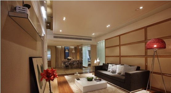 客廳簡單的布局,簡單的裝飾,卻在有效的燈光下熒熒生輝,紅色的裝飾花,紅色別致的落地?zé)?,依墻素雅的畫面等在白色調(diào)的燈光照耀下而有了情感語言,更有給人的感官印象,透射出其本身的內(nèi)涵氣質(zhì);
