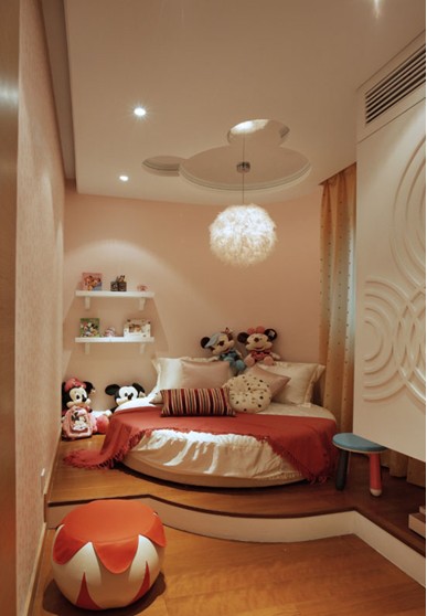 以紅色為主色系的溫暖色調(diào)恰當(dāng)體現(xiàn)了兒童的爛漫,卡通玩具再現(xiàn)了小主人的可貴的童趣;