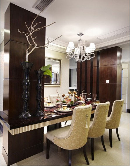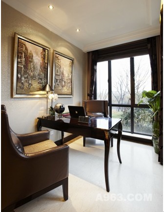 開闊的空間中,設(shè)計(jì)師采用了古典與老上海結(jié)合的手法,居室以奢華的淺金色調(diào)配以沉穩(wěn)大氣的木飾面、各類復(fù)古花型紋樣充斥于壁紙、軟裝擺件、裝飾布藝中,體現(xiàn)該居所奢華但不繁復(fù)、內(nèi)斂又不張揚(yáng)。各式老上海小品,古樸的鳥籠、略顯沙啞的留聲機(jī)、百樂門式的吧臺(tái),茶余飯后、身處其中,音樂悠揚(yáng)的響起,仿佛又馳騁于十里洋場(chǎng)的老上海之中,與屋主高雅的品味、對(duì)于生活享受的態(tài)度完全相符。