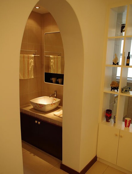 洗漱區(qū)的門洞是特別為業(yè)主而創(chuàng)意出的,這個設(shè)計讓你進入洗漱區(qū)體會到休閑放松的情趣,開心快樂的一天從這里開始!同時給予作品最大的張力。