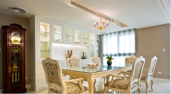 本案屋主是一位傳統(tǒng)產(chǎn)業(yè)自營(yíng)商,事業(yè)有成人脈廣闊,住家位居23樓而客廳面寬約10米,其客廳空間自然就朝向接待功能來(lái)規(guī)劃,整體以白色古典風(fēng)格打造,並適度輔以人文氣息的設(shè)計(jì)陳設(shè)來(lái)代表主人的空間品味。