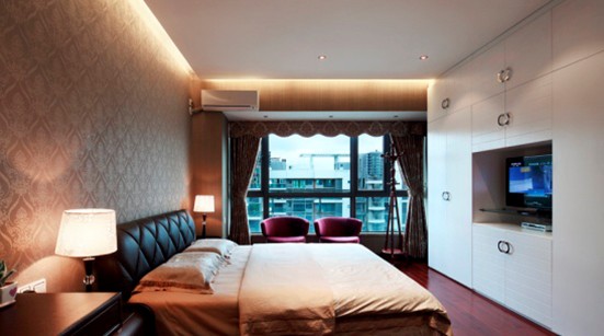 臥室的裝飾似乎很中性,看似不經(jīng)意中卻洋溢著經(jīng)典的時尚--------一種顯山露水的華麗;