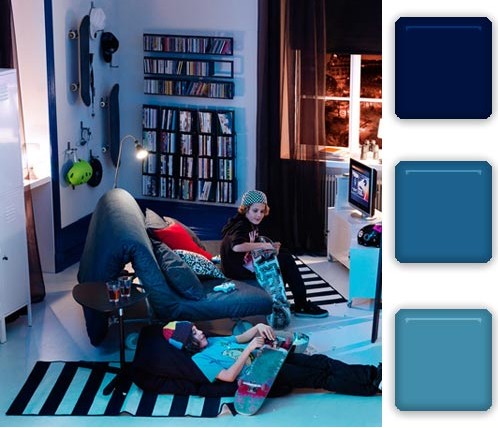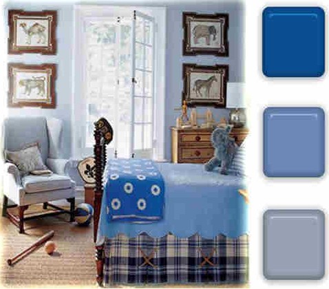 搭配點(diǎn)評(píng):同深淺的藍(lán)色運(yùn)用營(yíng)造了安靜的空間氛圍,可以使好動(dòng)的男孩子靜下心來。