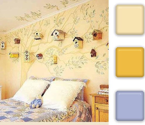 搭配點(diǎn)評(píng):充滿溫馨的色彩,蘊(yùn)涵著孩子對(duì)美好事物的追求和憧憬,采用橙黃黃色整體裝飾的兒童房光線清淡柔和。