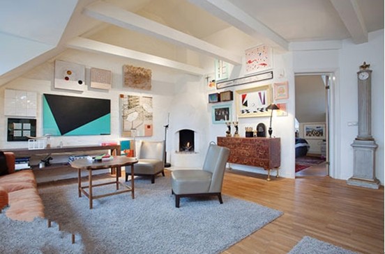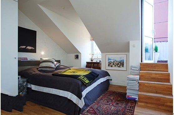 以自然元素為沉底的臥室設(shè)計(jì),配上低調(diào)的色彩,含蓄中更是透出一份穩(wěn)重。以艷麗色彩的地毯作為臥室的波普點(diǎn)綴,再加上亮黃色的蓋毯,使得氣質(zhì)沉穩(wěn)的臥室,被波普風(fēng)格襯托得更加幽默而溫馨。