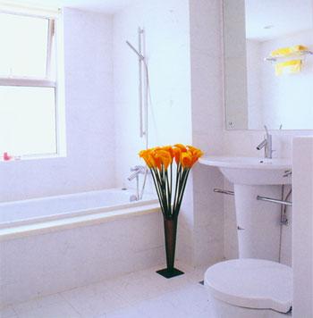 同樣為合理利用空間起見,浴室配置的選用,很考驗(yàn)主人的智慧。鏡柜和底柜充實(shí)豐滿的浴室家具,可以將衛(wèi)生間中常用的洗面乳、牙刷杯、剃須刀等瑣碎之物都隱藏在鏡子的后面,同時(shí)也可以將其他使用周期稍長(zhǎng)的洗滌清潔用品整齊地收藏在面盆下面的小柜中;占地小的分體座廁,既省地又省錢;長(zhǎng)度在1.5米以下的浴缸,深度往往比一般的浴缸深,由于缸底的面積小,往往是更節(jié)約空間的選擇。此外如掛墻式淋浴龍頭、靠角臺(tái)面、單孔臉盆龍頭等,節(jié)省空間且現(xiàn)代味十足。