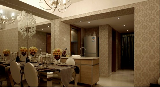 墻紙是新古典樣式的集中再現(xiàn),統(tǒng)一了空間的韻味 提升了格調;雕花玻璃與新古典的元素平衡感巧妙體現(xiàn);