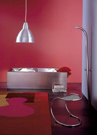 不用多說(shuō),這是個(gè)最簡(jiǎn)單也最好理解的裝飾方法,鏡子的反光效果使空間通透敞亮。博洛尼設(shè)計(jì)師將幾面鏡子頗具創(chuàng)意的安置在衛(wèi)浴空間,使得主人每日的梳洗打扮充滿樂(lè)趣——多一面鏡子,發(fā)現(xiàn)自己的另一個(gè)側(cè)面。