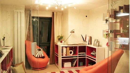 書房的設(shè)計應(yīng)空間有限,所以用玻璃隔斷,既是房間增強了通透性,也不失溫馨的本色。