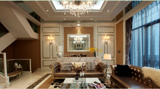 本案的所謂混搭簡歐式風(fēng)格我認(rèn)為其實(shí)是指簡歐元素+新古元素+時(shí)尚現(xiàn)代元素等綜合體的展現(xiàn),也成為今后的室內(nèi)裝飾的一個(gè)比較傾向性的趨勢;本案客廳的家具就明顯具有新古典的特征;而墻面的裝飾具有簡歐風(fēng)格;