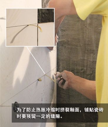 由于剛鋪貼的瓷磚,水泥未完全干固,容易受重力影響往下沉。因此,瓷磚貼上墻后,上下瓷磚之間必須預(yù)留一定的縫隙。磚與磚之間留有2毫米的縫隙, 如果保留的縫隙過小,熱脹冷縮時(shí)容易將釉面擠裂,減少瓷磚使用壽命。以減弱瓷磚膨脹收縮所產(chǎn)生的應(yīng)力。轉(zhuǎn)角時(shí),陰角磨邊先用玻璃刀劃出要磨掉的釉面,以免崩瓷,影響美觀。有時(shí)候?yàn)檫_(dá)到一定的藝術(shù)效果,采用錯(cuò)位鋪貼,錯(cuò)位鋪貼留意在原來留縫的基礎(chǔ)上多留1毫米的縫。