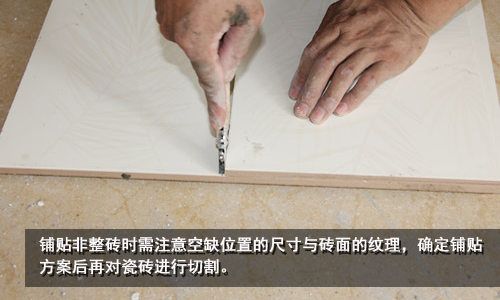 鋪貼非整磚時(shí),首先測(cè)量空缺位置的尺寸,根據(jù)瓷磚數(shù)量與磚面的紋理來確定排磚方式,再對(duì)瓷磚進(jìn)行切割。對(duì)于一些紋理不明顯的的瓷磚,如微粉磚,鋪貼時(shí)要注意其方向性,以免搞得墻面雜亂無章。經(jīng)由切割的瓷磚,應(yīng)鋪在角落不顯眼的地方,且切面朝里。盡量避免貼在墻面中心,影響美觀。如不能回避,切面應(yīng)保持工整,切忌爛邊。 選擇水泥的時(shí)候,水泥的硬度不能高于400#,以免拉破釉面,產(chǎn)生崩瓷。如碰到異常情況,應(yīng)馬上和供給商聯(lián)系。釉面磚美觀大方、顯得高貴典雅,而且又易于清潔、保養(yǎng),但它怕酸、怕水、怕污漬。