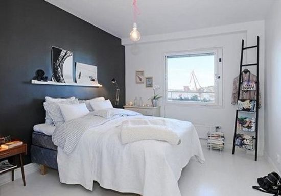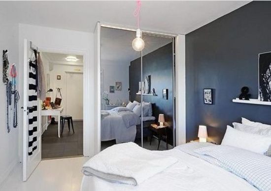 睡房的灰黑色就像海底最深處一般,和明亮的白色搭配一起,清爽自然。鏡面反射的衣櫥讓睡房在視覺上更加開闊。在墻上掛上些“海邊味”的掛飾,把“海邊味”傳染到睡房的每個角落。