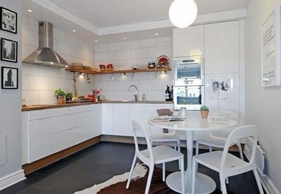 廚房處用咖啡色隔開大量的白**塊,讓顏色多了另外一個層次的同時(shí),更加貼近自然。圓形的四人飯桌,就像在當(dāng)?shù)睾_叢蛷d的裝修一樣,享受美食的同時(shí),好像還能感受到海風(fēng)的陣陣來襲。