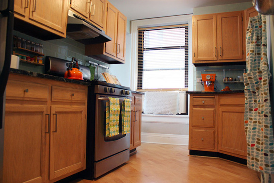 一般情況下,廚房的面積都不大,所以給人的感覺是設(shè)計(jì)和裝修起來(lái)都很容易,但是因?yàn)閺N房里的零碎東西特別多,所以真正規(guī)劃起來(lái)又會(huì)有很多煩瑣的小事,廚房又是一個(gè)最容易堆積油煙的地方,用了比較容易清洗的瓷磚,這里的瓷磚顏色也不是純白的,也是帶淡淡灰色的。其次用了大量的防水防火櫥柜,清潔的時(shí)候也能比較省事。廚房的柜體則用了純實(shí)木的面板。