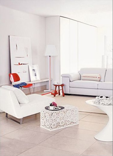 白色是室內(nèi)設(shè)計(jì)的最為重要的色彩之一,它和諧、統(tǒng)一同時(shí)又混合了優(yōu)雅、高貴,給人以舒適溫暖的家的感覺(jué)。白色可以與任何顏色相配,但是每一種組合的效果和基調(diào)又各不相同,與淺色搭配,精致而浪漫,與原色相配,明亮而熱烈。因?yàn)榘咨哂袕?qiáng)烈放射光線的能力、擴(kuò)大任何現(xiàn)存的光線,它可以使一個(gè)房間看上去更明亮。