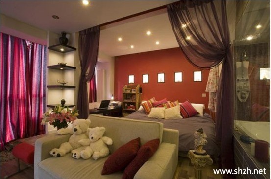 帷幔在空間的表現(xiàn)形式通常有兩種,一種是掛在床第周圍,將床從空間中分隔出來。閉合帷幔,將床圍合成一個(gè)封閉、私密的空間,拉開帷幔,又能夠成為床的一種裝飾,溫馨而又浪漫。另一種是將帷幔作用軟隔斷,起到限定空間的作用,將相對(duì)較大的空間分成兩個(gè)或更多個(gè)部分,能夠有效地利用空間,同時(shí)又不破壞空間的美感。