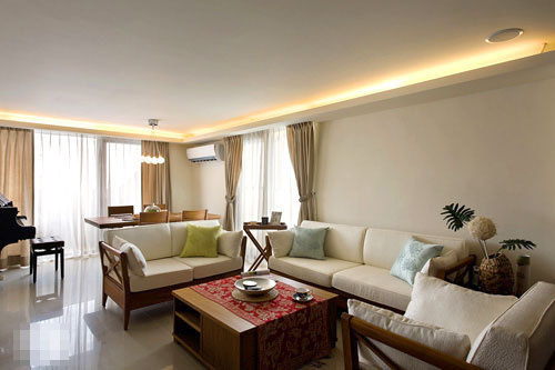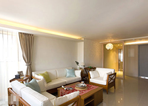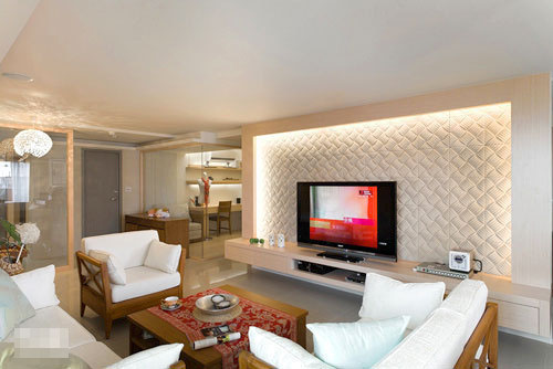 將自然、間接光源接續(xù)的線面,清楚而利落的表現(xiàn)出來,家具以柚木為主,配置清淺的立面顏色做背景,吊燈燈飾的造型,與空間悠閑的渡假氛圍融洽的結(jié)合。