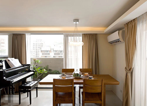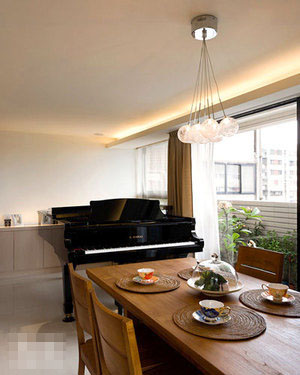 原設(shè)置為休閑區(qū)域的空間更兼具琴房機能使用,與餐廳、客廳的地域感融合,加大彼此互動的關(guān)系。