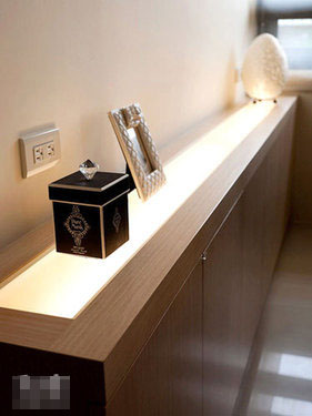 收納柜上方臺面作間接光源透光處理,柜體以收納為主。